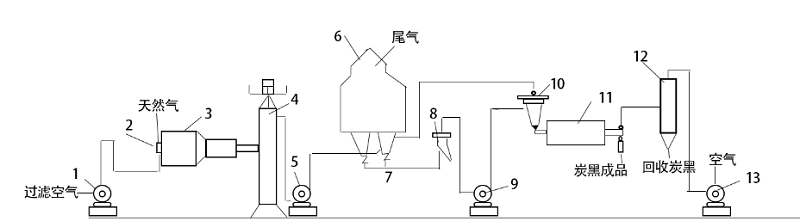 天然氣半補強爐法炭黑生產工藝流程