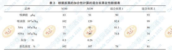 從上表可以看出:混合炭黑的化學性質如吸碘值、吸油值、氮吸附比表面積與 N330 類似。