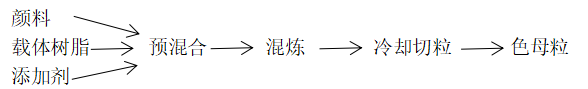 色母粒的生產(chǎn)方法有多種,但基本工藝均可用以下過程簡示: