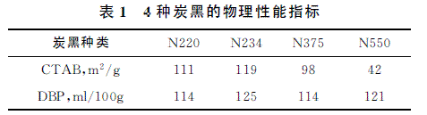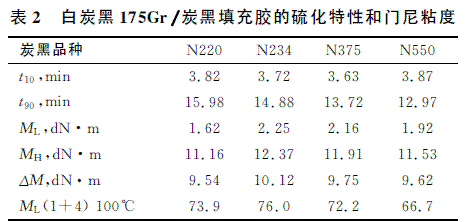 2.1 白炭黑175Gr/炭黑填充膠的加工性能表1是4種炭黑的CTAB比表面積和DBP吸油值。