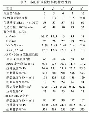 2.2 小配合試驗的膠料性能小配合試驗膠料的物理性能如表3所示。