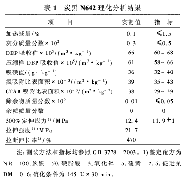 炭黑N642的理化分析結果見表1。從表1可以看出,炭黑N642的理化性能達到國家標準優等品指標要求。