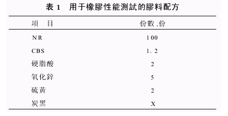 所有炭黑品種由SidRichardson炭黑公司提供。常規炭黑品種有:N110、N220、N330、N550、N772實驗炭黑品種有:A 1、A 2、A 3。