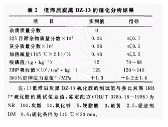 低滯后炭黑DZ一13的理化分析結(jié)果見表2。