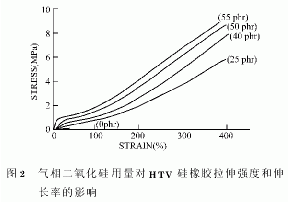 3.1.1 氣相白炭黑對HTV硅橡膠力學性能的影響