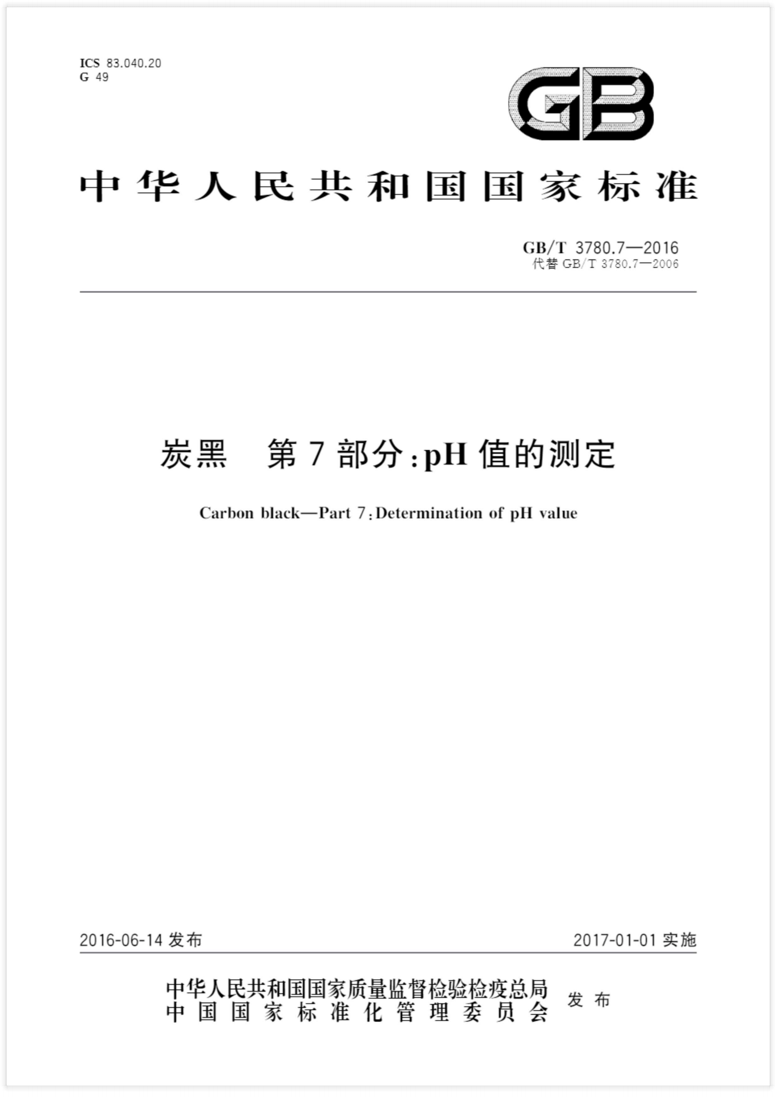 GB/T3780的本部分規定了炭黑pH值的測定方法。