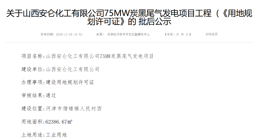 p安仑化工有限公司是山襉K光焦化集团的全资子公司,共有11条炭黑生产线Q配?台发甉|l,d率ؓ60MWQ年发电3.5亿度。ؓ了实现炭黑尾气发甉|标,该公司投?.7亿元Q实?5MW炭黑气发电目?/p>