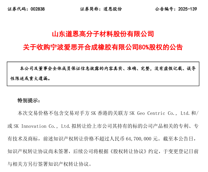 据炭黑业网了解Q此ơƈ购对于道恩股份而言意义重大Q它从Ҏ上解军_司在上游原料斚w可能面的“卡脖子”问题,大幅降低对外部原材料的依赖风险。道恩股份一直以研发和生产弹性体为特Ԍ致力于构建绿色轻量化高分子复合材料^台。随着EPDM业务的融入,道恩股䆾“聚?Ҏ?应用”的全业链条将更加完善。这一战略布局不仅丰富了公司的产品l构Q还通过技术协同与产业铄延Q提升了道恩股䆾在高分子材料领域的综合竞争力与行业媄响力?/p>