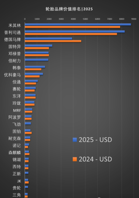 輪胎品牌價值排名變化