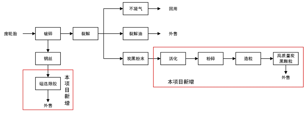 該項(xiàng)目不涉及廢橡膠煉油及現(xiàn)有工程粗炭黑生產(chǎn)工序改造,建設(shè)內(nèi)容為炭黑活化、造粒、包裝及鋼絲除膠。本項(xiàng)目新增炭黑深加工僅針對(duì)現(xiàn)有工程炭黑粉末,無新增產(chǎn)能。