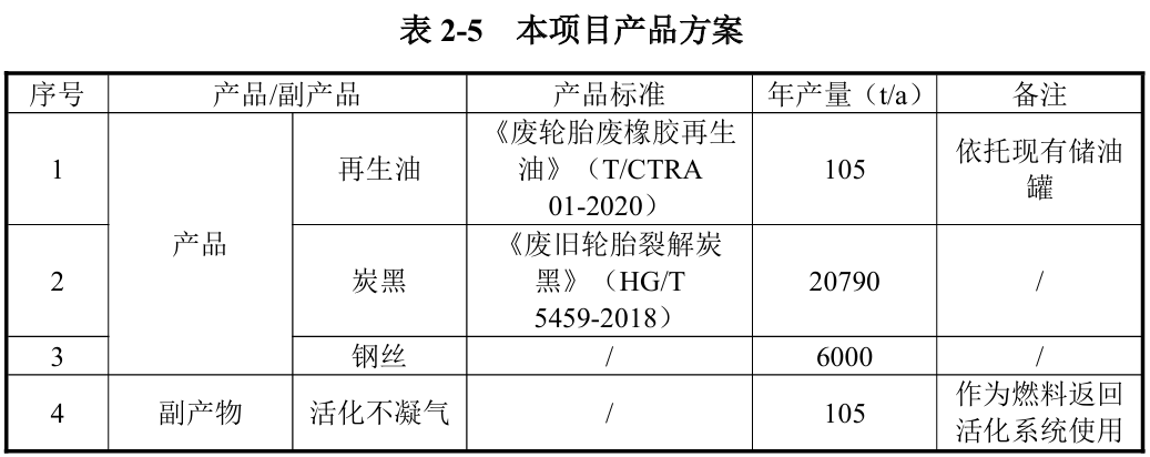 該項(xiàng)目生產(chǎn)所用原料為現(xiàn)有工程生產(chǎn)的粗炭黑及鋼絲,粗炭黑經(jīng)深加工處理后,將可轉(zhuǎn)化為約0.5%再生油、99%深加工炭黑、0.5%可燃?xì)狻T擁?xiàng)目建成后,可年加工處理21000噸粗炭黑,生產(chǎn)6000 噸鋼絲。