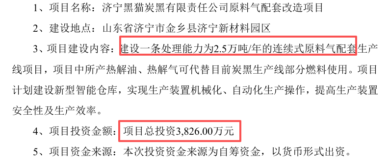 濟寧黑貓炭黑有限責任公司計劃投資1.06億元實施原料氣配套改造項目。12月15日,項目環境影響報告書已批準。