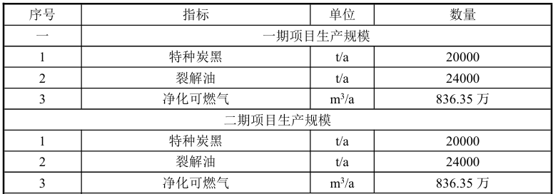 項目建成后,一期、二期加工處理能力均為5萬噸/年橡膠膠粒,一期生產的熱解氣、熱解油供應給現有1#、2#炭黑生產線,二期生產的熱解氣、熱解油供應給現有3#、4#炭黑生產線。
