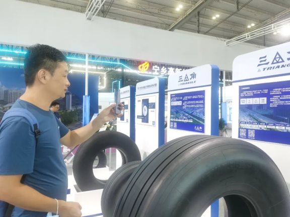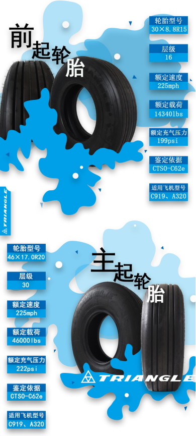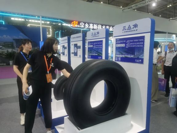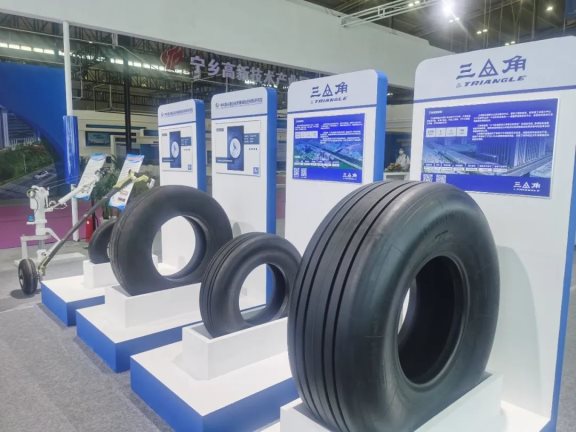 博覽會上,三角航空輪胎位于長沙國際會展中心W3館-8號口,展示的是30×8.8R15前起輪胎和46×17.0R20主起輪胎。其中,三角研發的30×8.8R15規格是國內第一個通過民航動試標準的民用航空子午線輪胎產品,實現了國內民用航空子午線輪胎技術上“零”的突破。