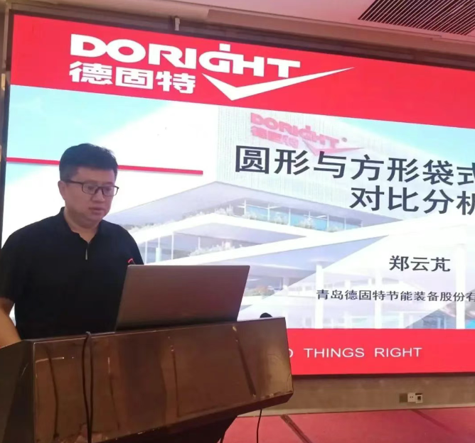 作為本次會議的金牌支持單位青島德固特節能裝備股份有限公司鄭云芃部長與參會代表分享了《圓形與方形布袋除塵器對比分析》的研究報告