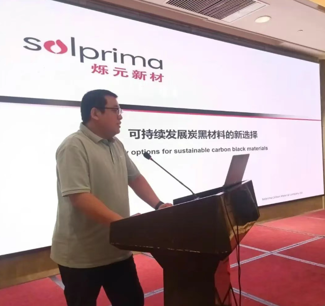 爍元新材料(東營)股份有限公司研發部部長王祥為參會代表帶來了公司新研發的可持續發展炭黑材料的應用成果