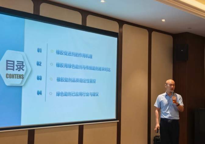 會議由橡膠制品分會秘書長宋巖主持,鶴壁元昊新材料集團股份有限公司董事長張智亮到會致辭,中橡協橡膠助劑分會秘書長王延棟到會講話。