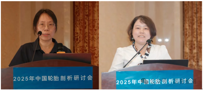 國家橡膠輪胎質檢中心高級工程師岳敏、呂佳萍結合裂解氣相色譜、氣相色譜質譜、紅外光譜等分析技術,帶來輪胎剖析報告配合劑新發現、電動車輪胎膠料配方等關鍵闡釋。