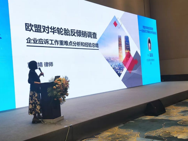 北京金誠同達律師事務所律師童靖婧做了《歐盟對華輪胎反傾銷調查—企業應訴工作重難點分析和經驗總結》報告,她介紹說,傾銷幅度抗辯核心精準核算生產要素成本(如天然橡膠價格、能耗數據),合理選擇“替代國”參照標準以降低傾銷邊際認定提交證據需符合歐盟格式要求,包括中英文雙語財務審計報告及完整供應鏈憑證。產業損害抗辯要點證明中國輪胎未對歐盟產業造成實質性損害:對比市場份額變化、利潤趨勢及本土產能利用率數據。聯合下游歐盟進口商發聲,強調加征關稅對歐洲消費者和汽車產業的負面連鎖影響。應訴流程優化建議。