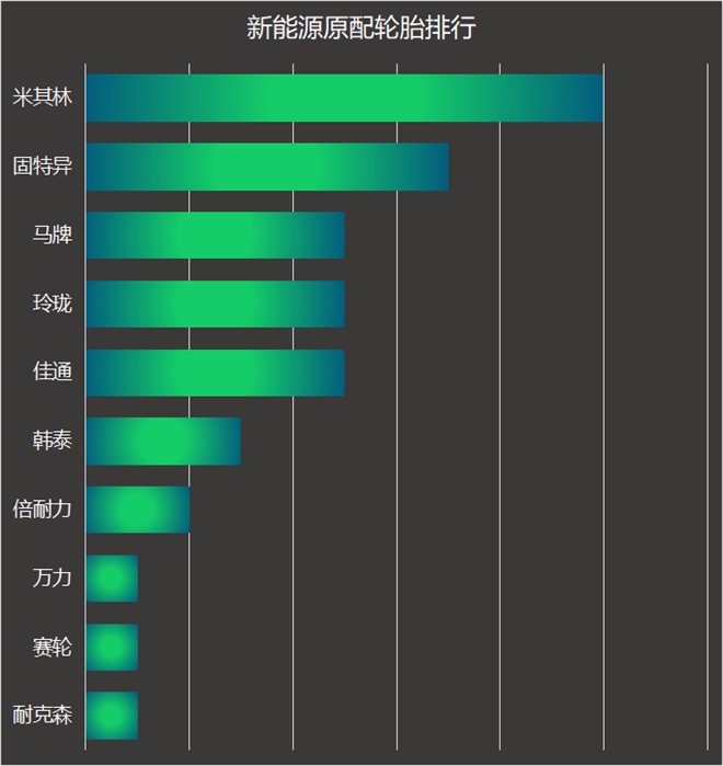 新能源汽車原配品牌排行中,米其林依舊走在時代的前列,成為了眾多車企眼中的寵兒;固特異緊隨其后,而作為國產輪胎的玲瓏更是力壓群雄,與德國馬牌和佳通并列第三。這也恰恰證實了當時玲瓏成為國潮新車五菱宏光mini原配的決策是多么正確。