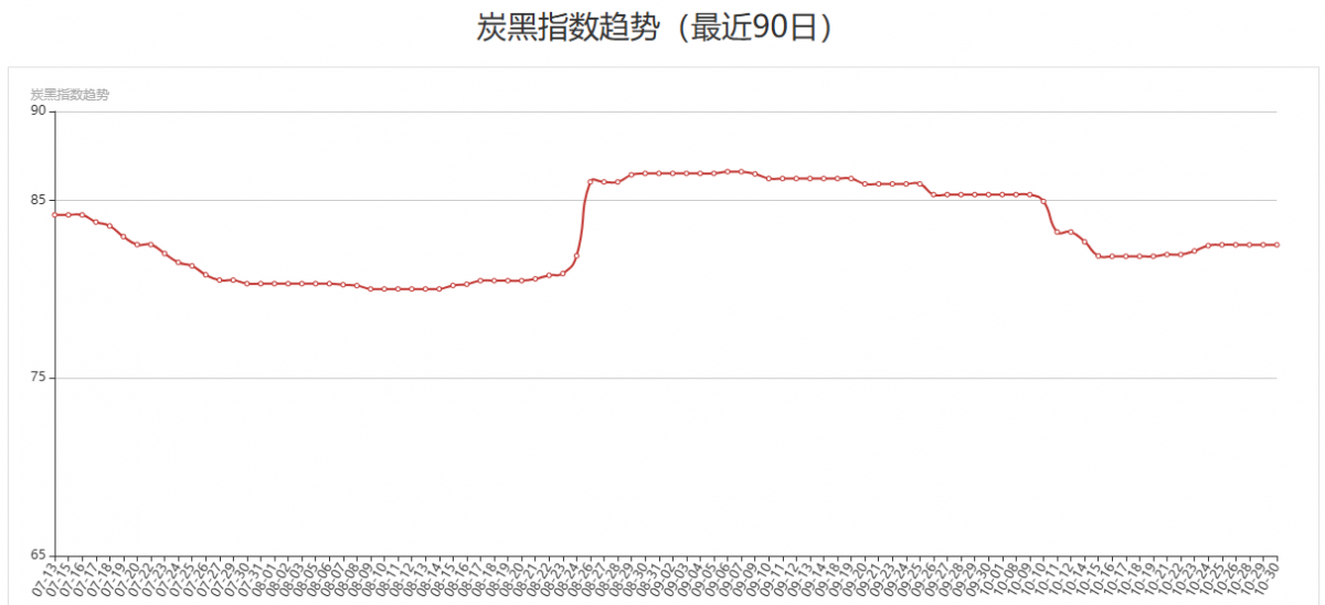 炭黑產業網根據市場N330/N220/N550三個牌號最新市場成交價格,并分別按一、二、三線品牌權重分配計算后得出今日最新炭黑指數為82.50,與之前相比炭黑指數雖然有所變化,但整體依然維持在較低區間。